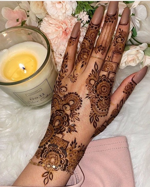 Explore the diverse array of ideas and let your creativity bloom with these mesmerizing back hand mehndi design.