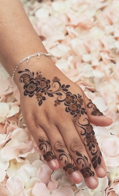 14. Mehndi Design with Delicate Finger Cuffs and Floral Accents