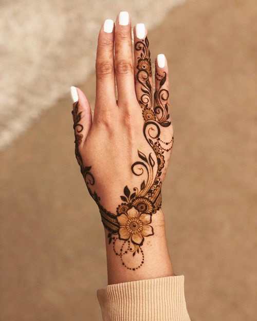 3. Back Hand Mehndi Design with Flowing Floral Elements