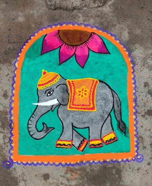 Elephants are symbols of wisdom and strength so you can craft a Rangoli making an elephant with Flower design.