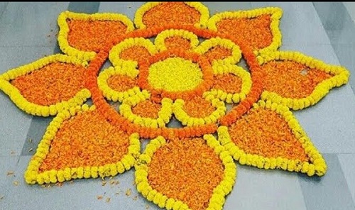 26 Dussehra Rangoli Ideas with Flowers