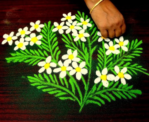Have a glance at these Free Hand Simple Rangoli Designs with Flowers