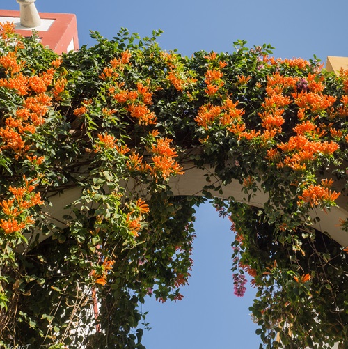 It is a beautiful creeper that produces clusters of bright orange tubular flowers, ranging from 1-3 inches in length. These vibrant blooms typically make their appearance from fall to spring. In some regions of India, it might even grace your garden during the summer.