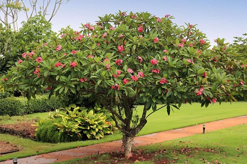 Frangipanis, or as the locals call it, the Champa tree, has beautiful, fragrant, pink flowers that make it a great ornamental choice. These trees actually originated in Central America, Mexico, and the Caribbean and were introduced to India centuries ago.