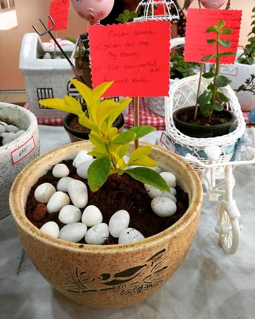 Golden Duranta responds well to pruning and can be shaped to maintain its desired size and form. It is best to prune them in late winter or early spring before the onset of new growth. Use clean and sharp pruning tools to make clean cuts and minimize damage.