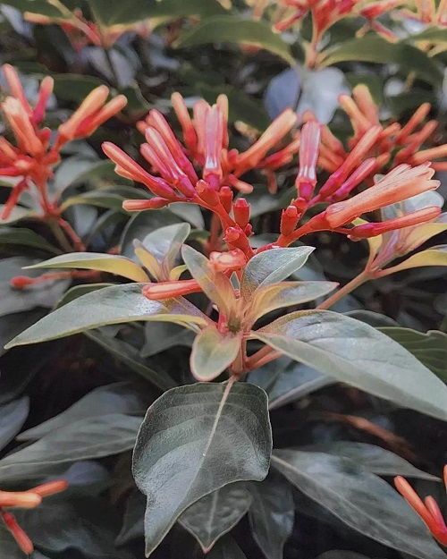 Firebush plant is a deciduous to semi-evergreen shrub that can reach a height of 6 to 15 feet (1.8 to 4.6 meters) tall, depending on the growing conditions. It has an upright and slightly spreading growth habit. The leaves are elliptical or lance-shaped, opposite, and measure around 2 to 6 inches (5 to 15 centimeters) in length. The foliage is typically dark green, but it may turn reddish or bronze in cooler temperatures or during periods of stress.