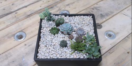 This minimilastic succulent garden is a great choice for indoors and outdoors both. Watch this video for details.