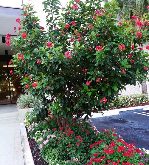If you have Jatropha integerrima in your garden, you can easily control its size and shape by pruning it. Pruning during the dormant season will encourage more compact growth and more abundant flowering.