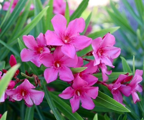 Kaner, also known as Oleander, is a highly toxic flowering shrub that is native to the Mediterranean region. Despite its toxicity, it is widely grown for its ornamental value and its beautiful, showy flowers that come in shades of pink, red, white, and yellow. The plant is also used in traditional medicine for its medicinal properties, including its ability to treat heart conditions and skin diseases, although caution is advised due to its toxic nature.