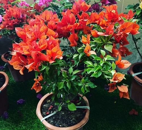 The plant is known for its showy, papery flowers that come in shades of pink, red, orange, and purple, and it is often used as an ornamental plant in gardens and landscapes. Bougainvillea is also drought-tolerant and relatively easy to care for, making it a popular choice for landscaping in arid and semi-arid regions.