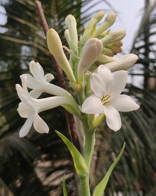 Rajnigandha, also known as Tuberose, is a fragrant flower native to Mexico that is widely cultivated for its beautiful and long-lasting blooms. The flower is prized for its sweet, heady fragrance and is often used in perfumes, garlands, and decorations for special occasions such as weddings and religious festivals.