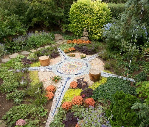 Design pathways or stepping stones in the shape of Vishnu’s footprint or his Sudarshana Chakra.